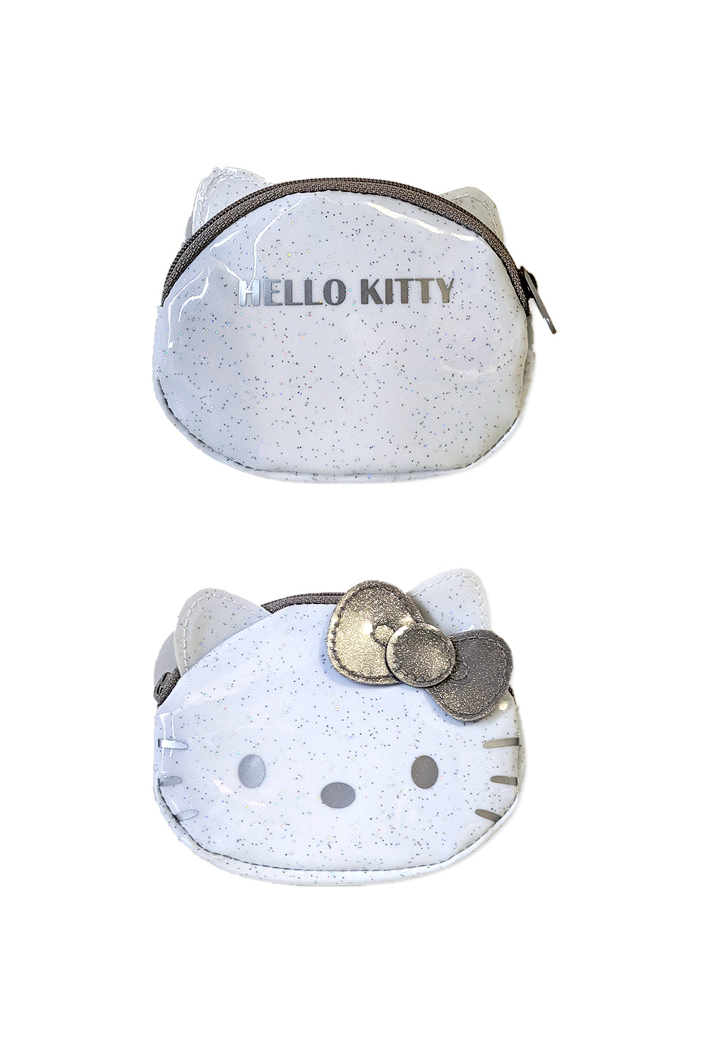 ➡The front of the coin purse showcases Hello Kitty's face with a silver bow and adorable popping-out ears, while the back is glittery white with "Hello Kitty" written in silver.