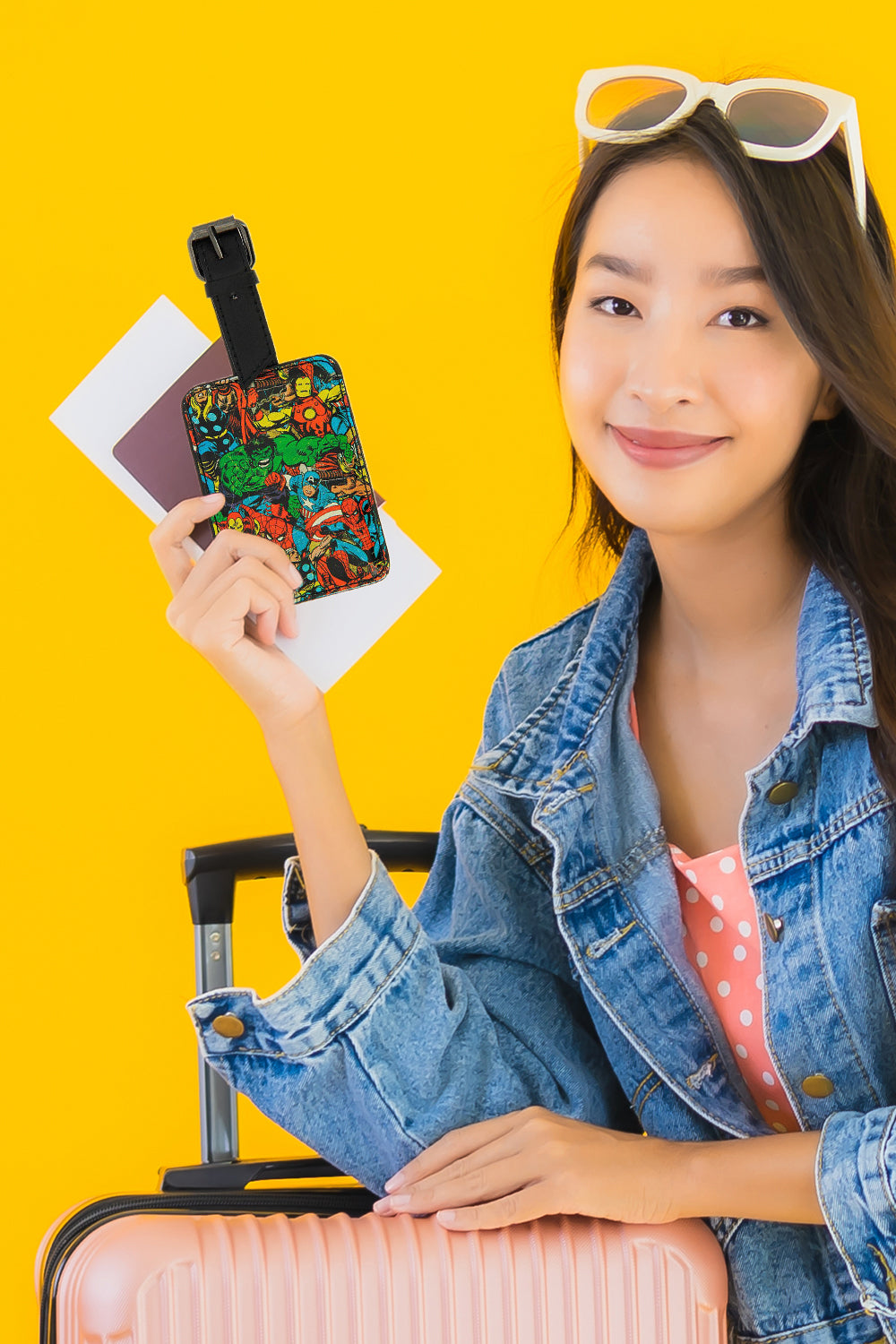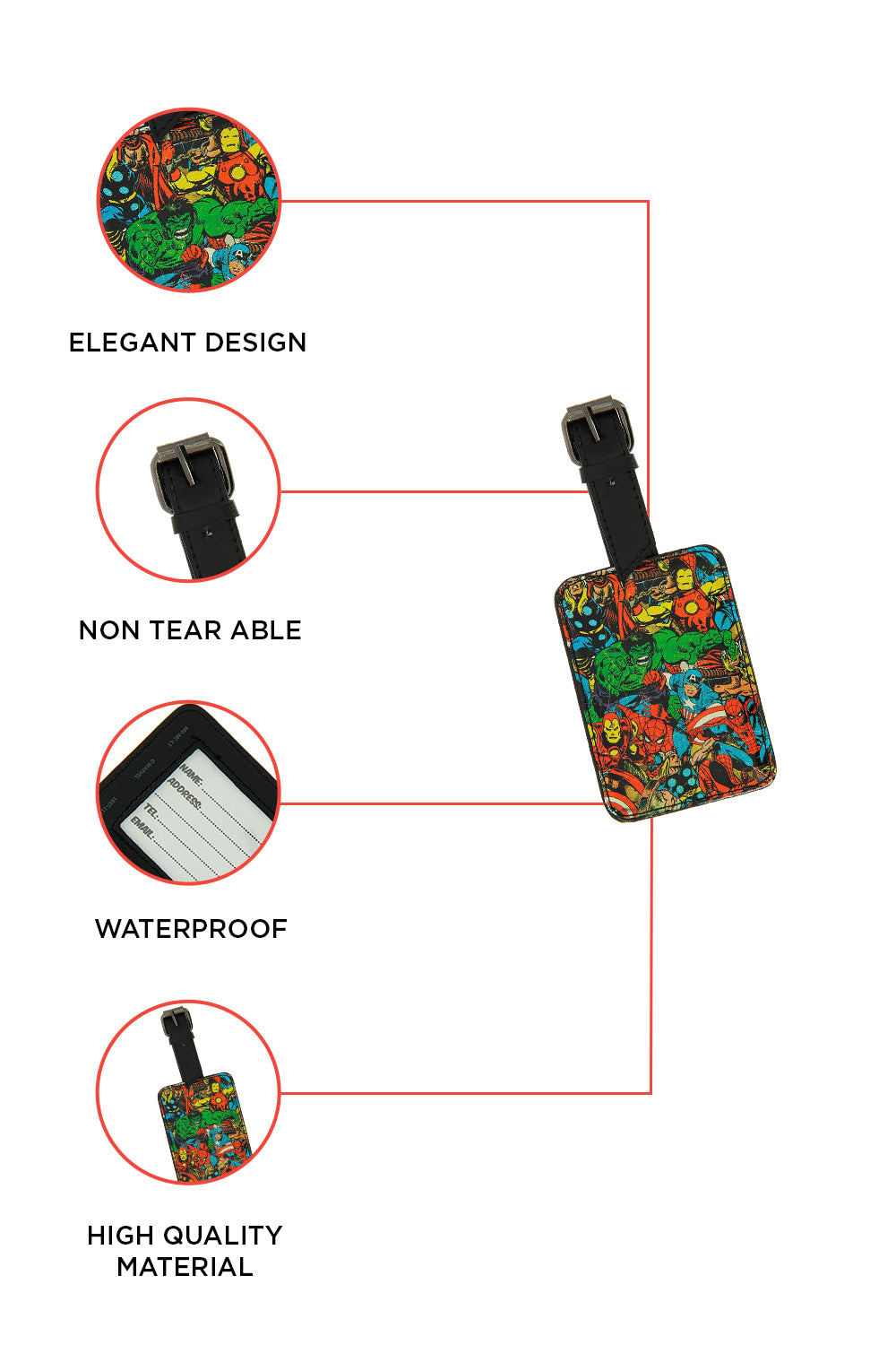 Marvel Multi Character Luggage Tag has a Marvel Multi Character design on one side and on the other side a place for your name and other details, for a business card or an ID card. Easy to help you spot your luggage. This is the coolest luggage tag ever which is lightweight, slim design, and will not add unnecessary weight to your bags.