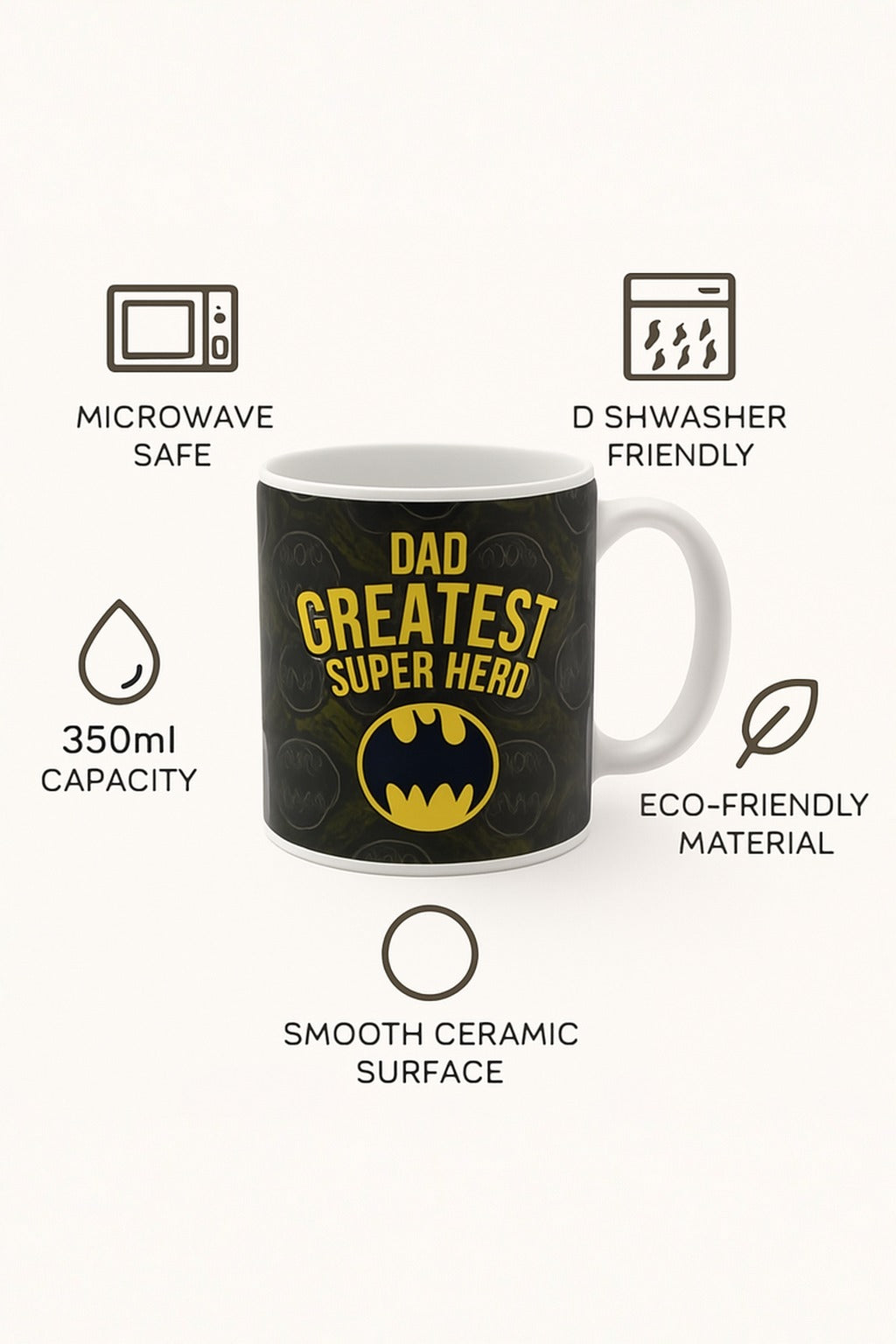 An awesome gift for Father’s Day, birthdays, holidays, or special occasions, this Dad Greatest Super Hero mug brings Gotham’s heroic spirit to any dad’s collection with its authentic and bold design.
