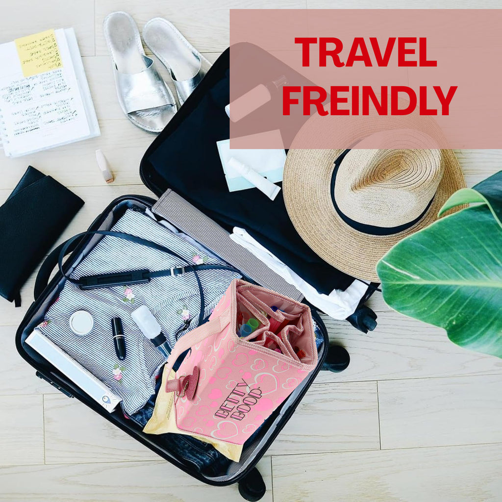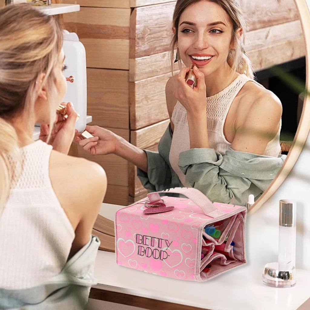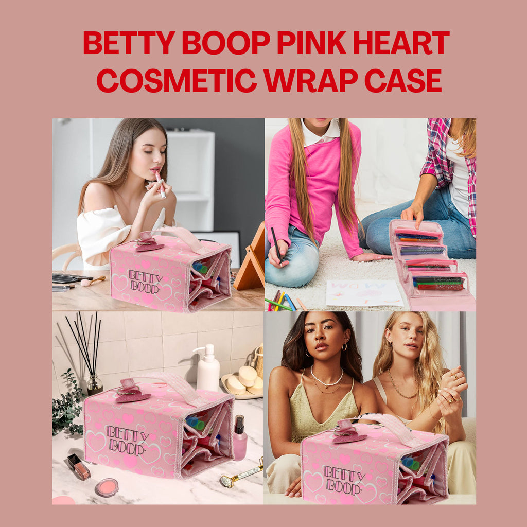 ➡Design: The Betty Boop Pink Cosmetic Wrap Case is a 4-fold cosmetic case designed for compactness and organization during travel.