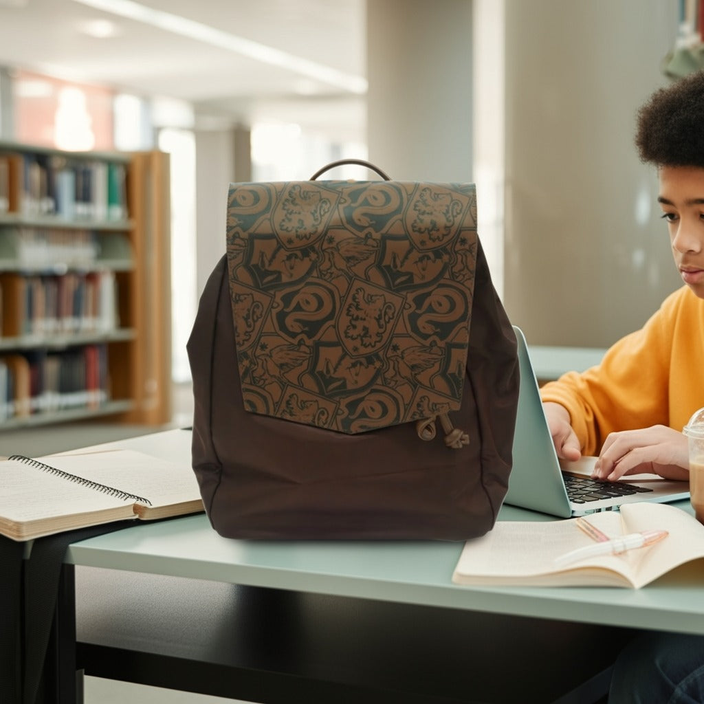 Harry Potter Brown Hogwarts Backpack| Padded Adjustable Shoulder Straps Laptop Sleeves & Drawstring Closure |Travel Gift.