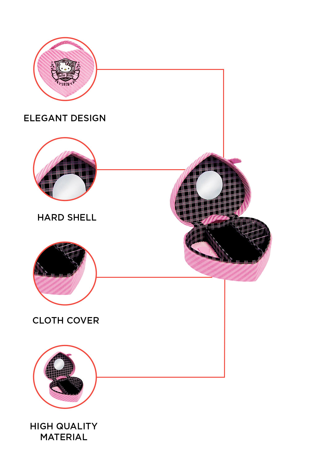 - It will keep your jewellery and watches safe from scratches in the hard case. This is a must have for all Hello Kitty fans.