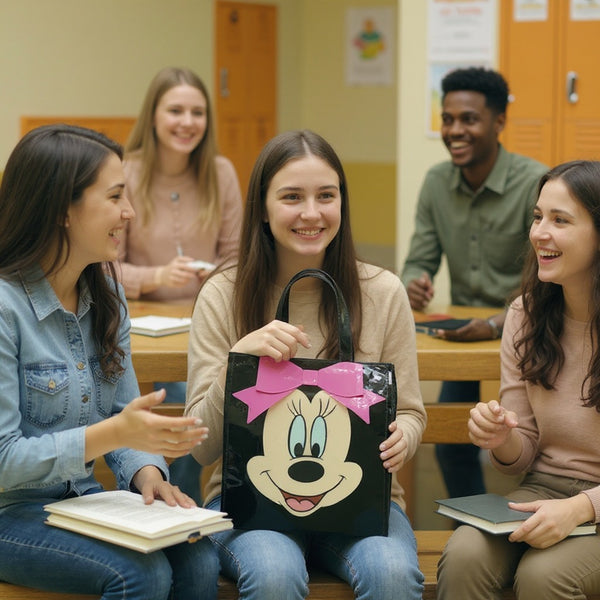 Minnie Mouse Tote Bag | Shoulder Purse Pink Bow | Cute Black Travel Satchel Trendy Girl