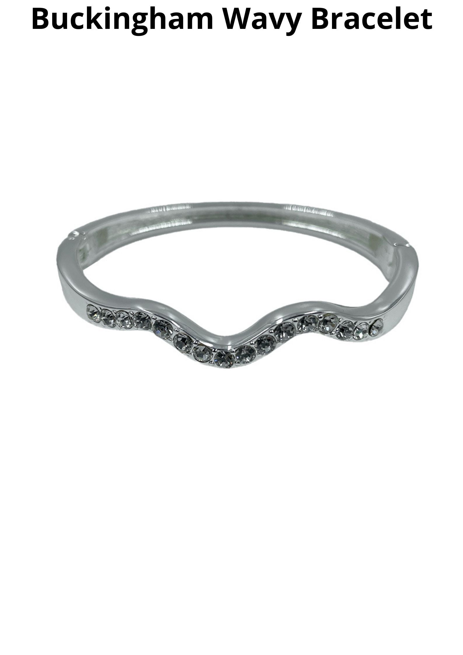 Jewelleries are always close to a women’s heart. Buckingham Wavy Bracelet is an elite design rhodium plated bracelet with crystals studded design on it.