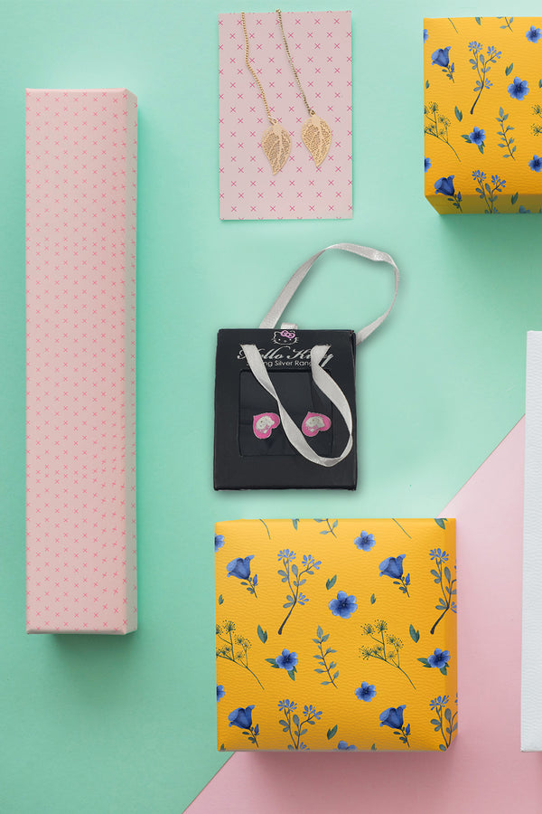 Hello Kitty 925 Original Sterling Silver Range Pink Enamel Heart Shaped Earrings