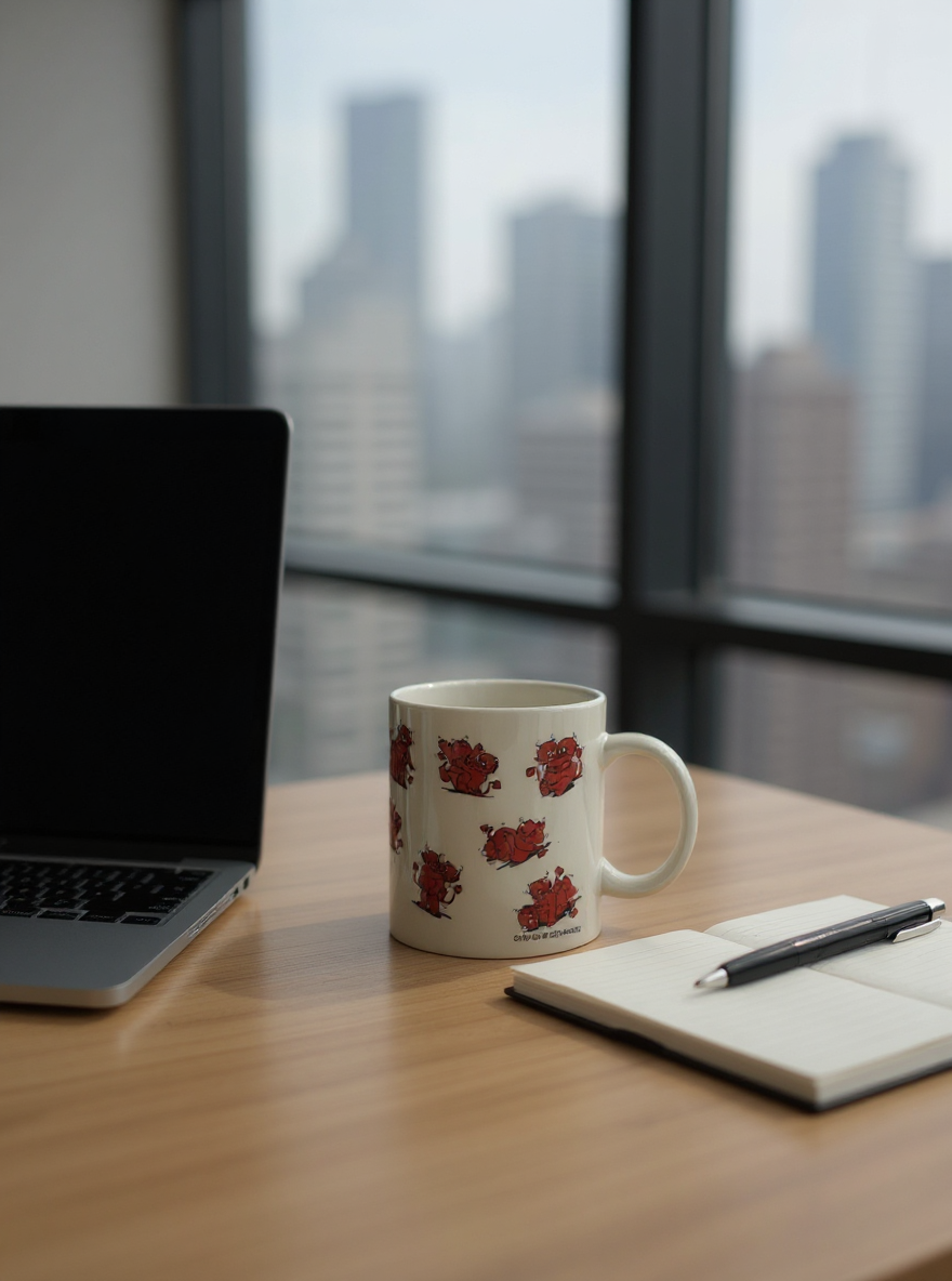 Showcases a cheeky little devil with mischievous devils with horns and a wagging tail, adding a playful, rebellious touch that brings a hint of fun and naughtiness to your daily coffee or tea ritual.