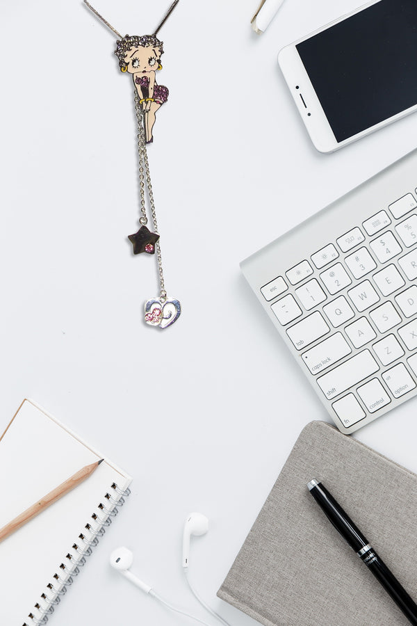 Betty Boop Ladies Betty Winking Charm with Austrian Crystals Necklace 42 cm