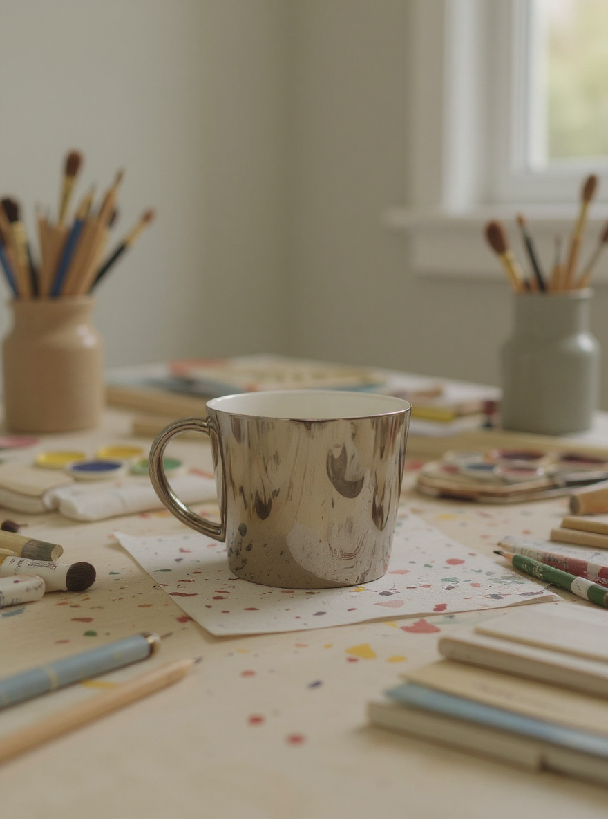 Designed with a sturdy, ergonomically shaped handle and a classic mug form, ideal for keeping beverages warm in any room while adding a touch of personality with its metallic design that transforms every sip into a radiant moment.