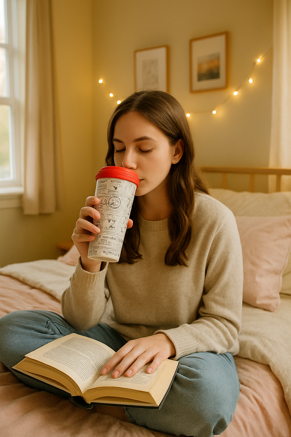 Snoopy Peanuts Comic Strip Reusable Coffee Cup with Red Lid