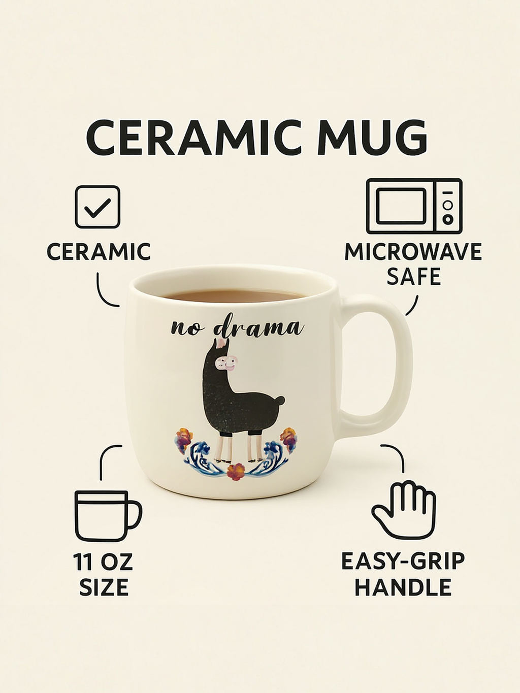 No Drama Llama Peace Ceramic Mug | Gift for Chill Enthusiasts