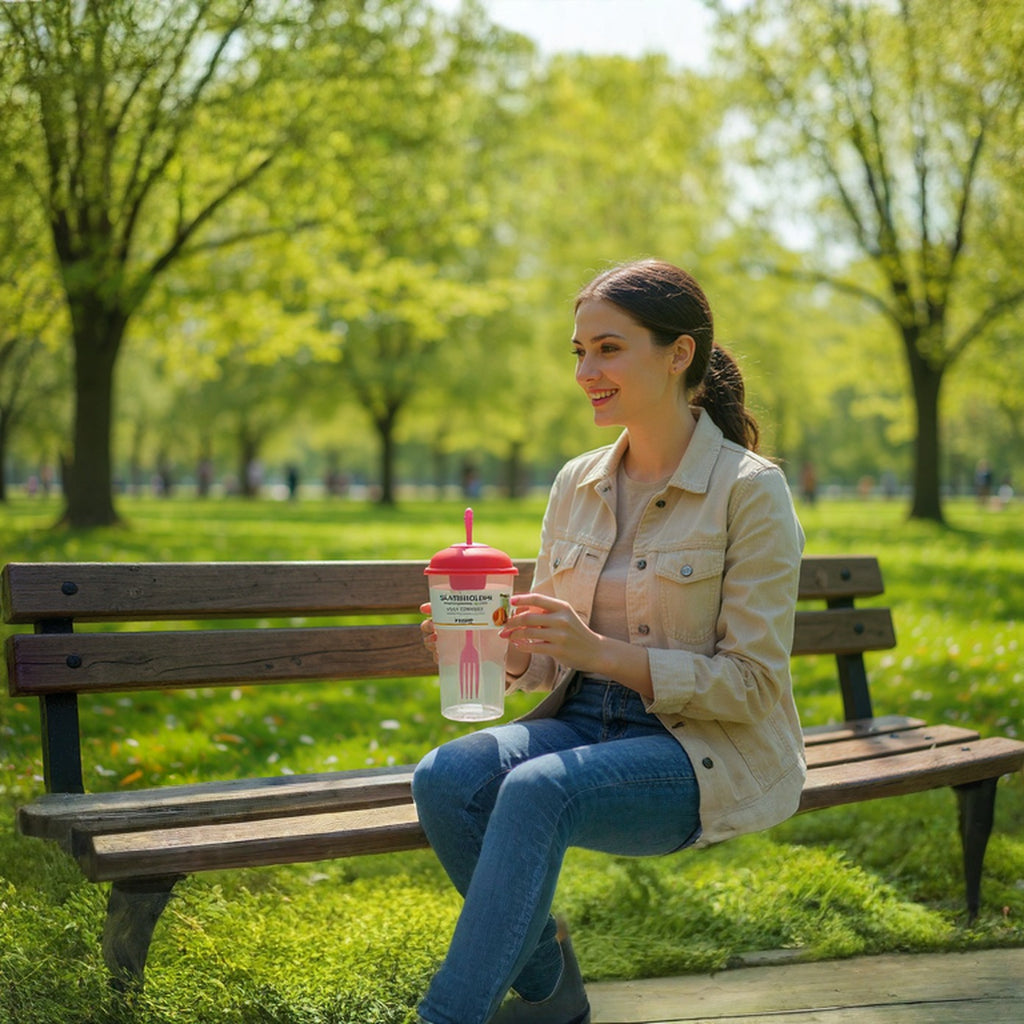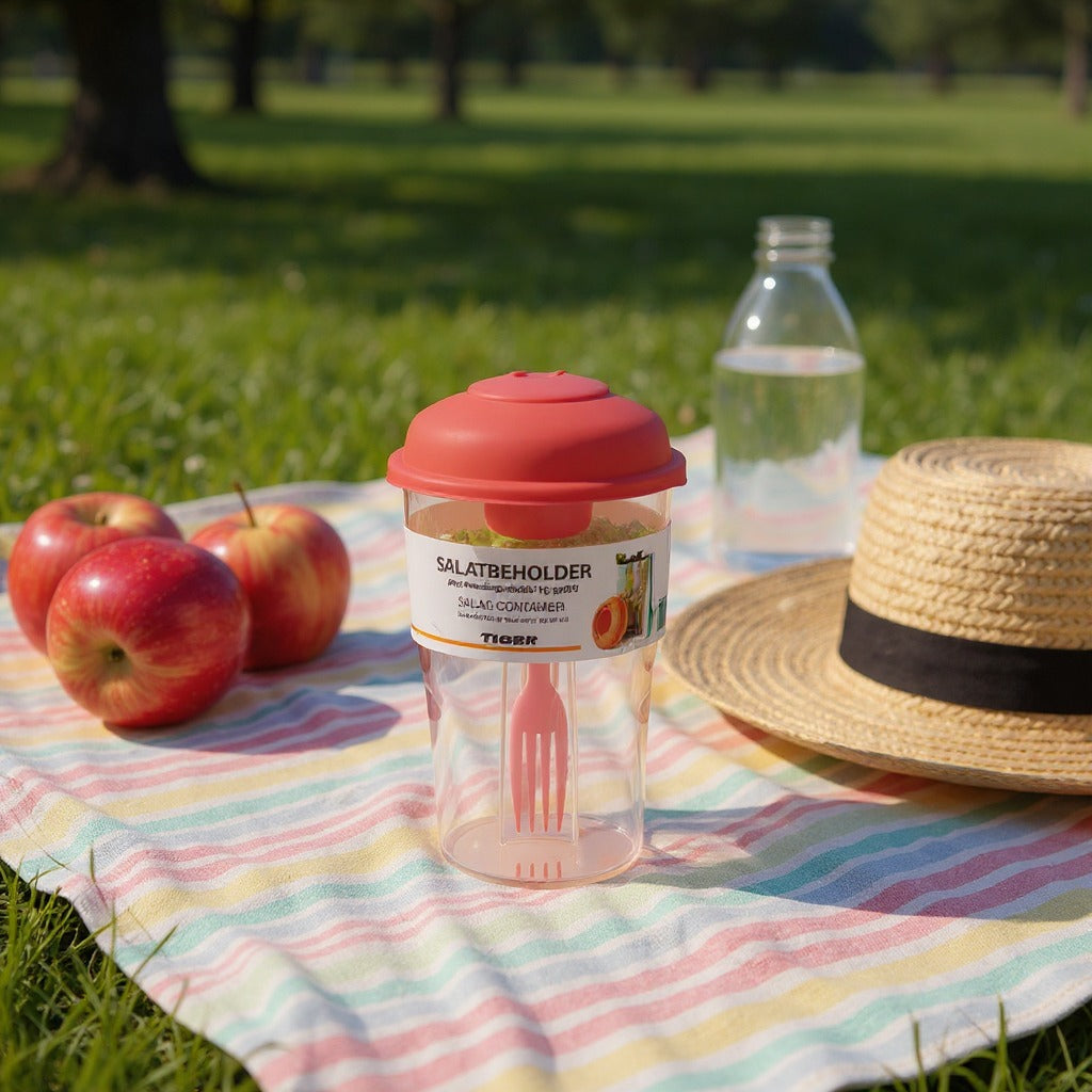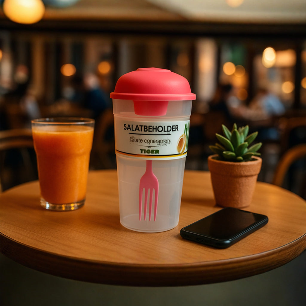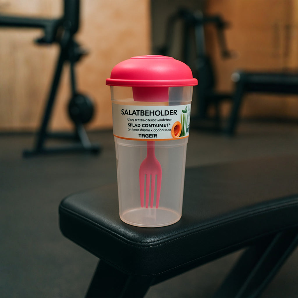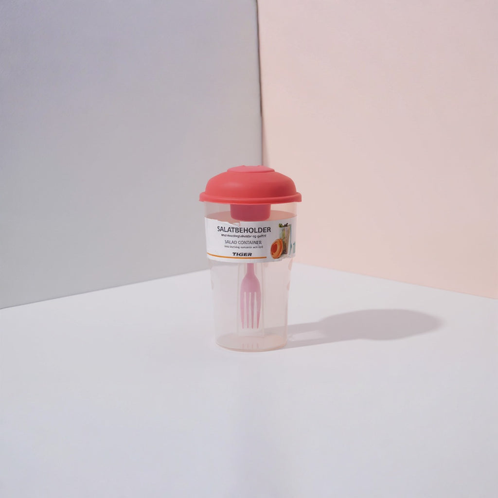 Portable Salat Beholder with Pink Fork & Lid | BPA-Free Plastic Salad Container for Work Gym Travel Meal Prep