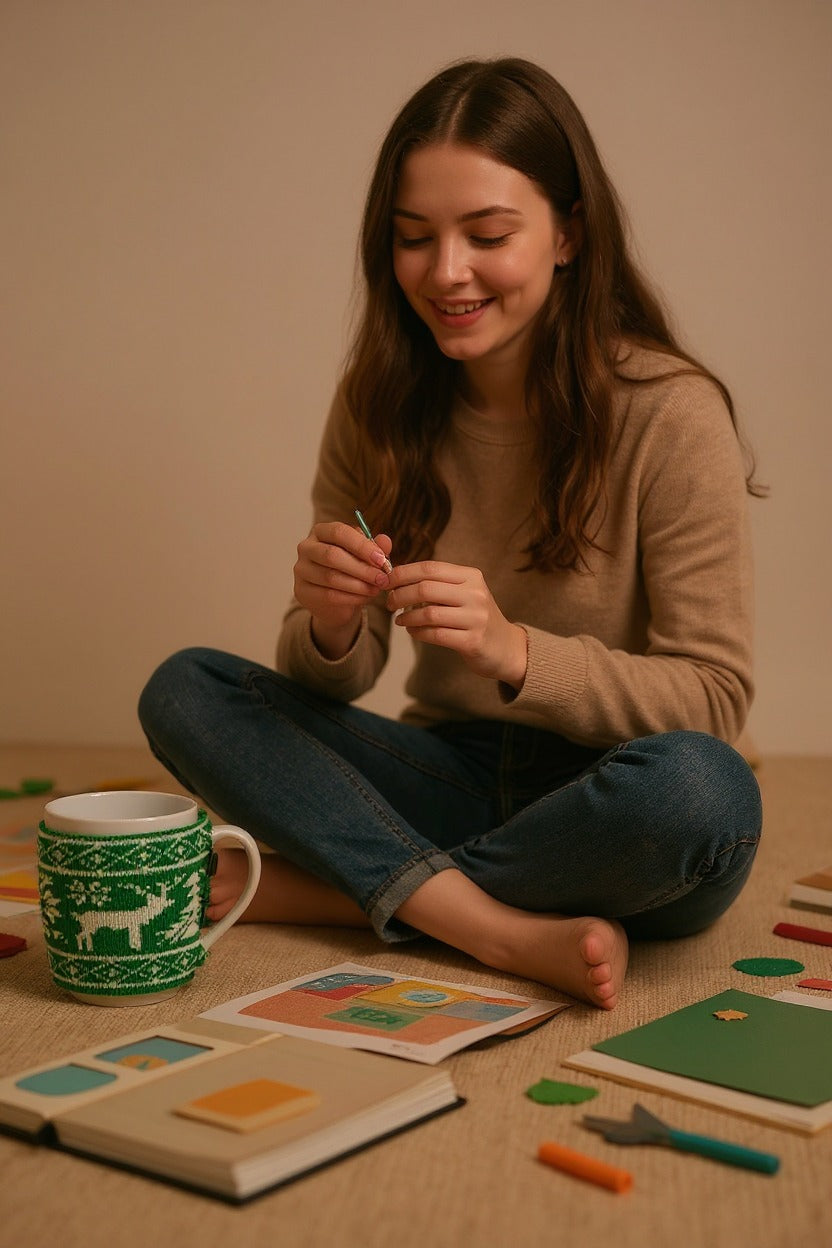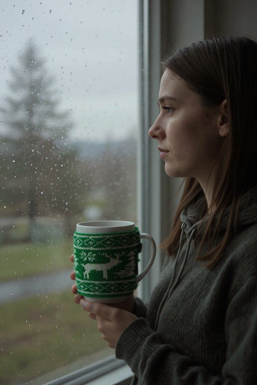 Reindeer Holiday White Ceramic Mug with Knitted Sleeve | Gift for Seasonal Fans