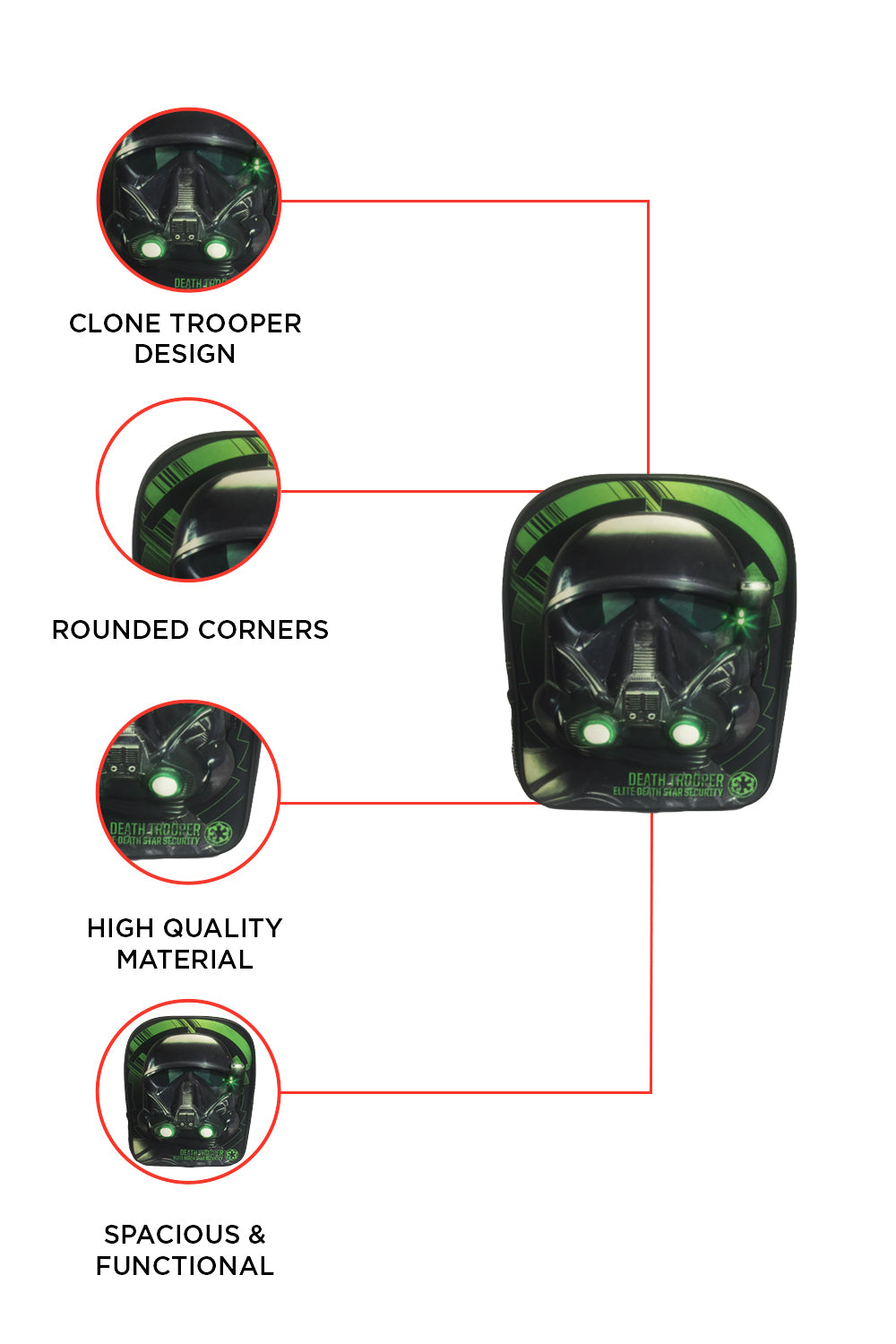 ➡The backpack features a 3D design of the Clone Trooper face mask from Star Wars, complete with a built-in flashlight for added uniqueness and appeal.