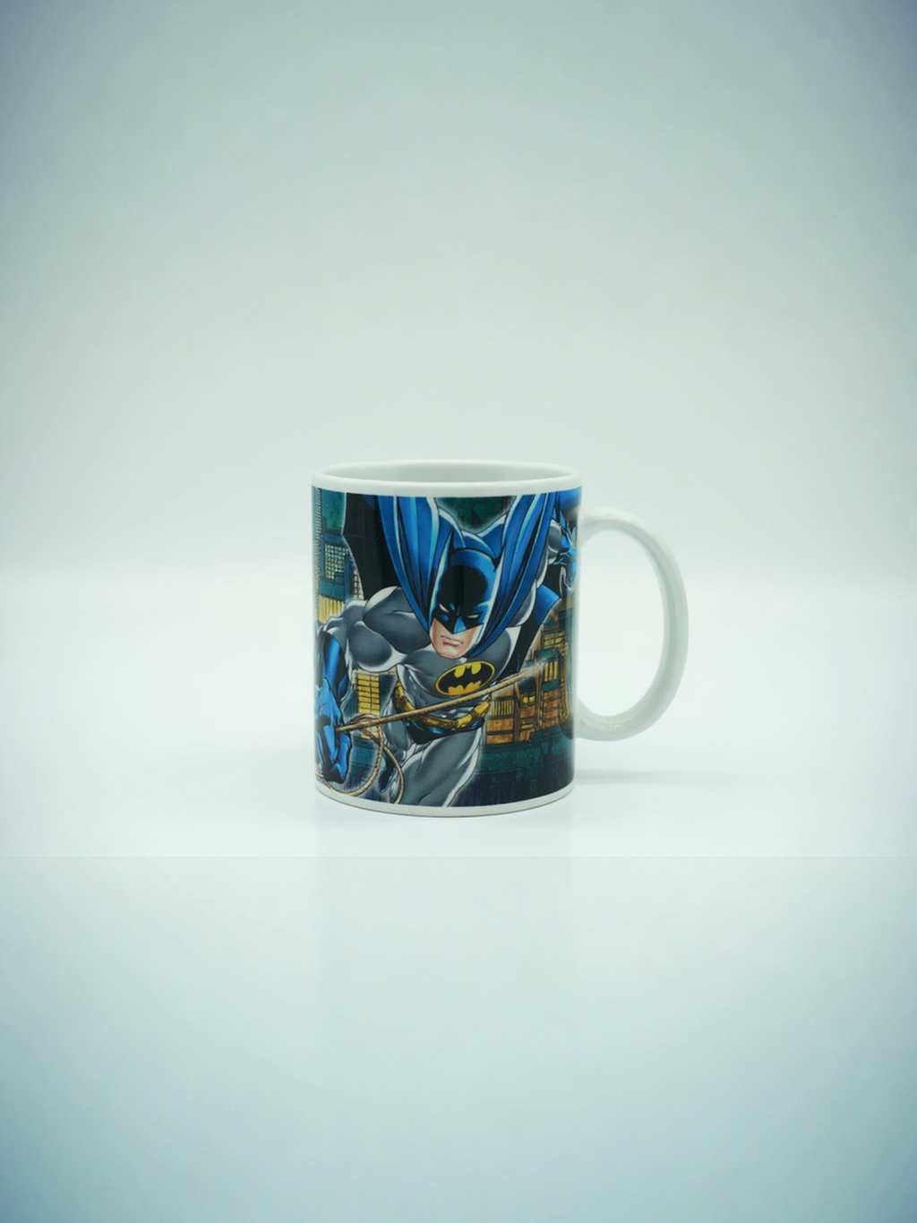 Showcases the iconic Batman logo centered on one side and batman silhouette on one side of the cup, adding a mysterious, classic touch that brings a sense of vigilance and timeless appeal to life.