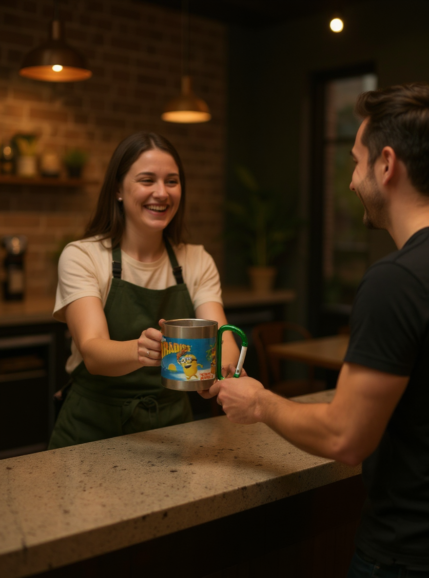 Designed with a sturdy handle and an integrated carabiner clip for easy attachment, ideal for keeping beverages warm or cold on the go while adding a touch of personality with its Minions design that transforms every sip into a paradise moment.