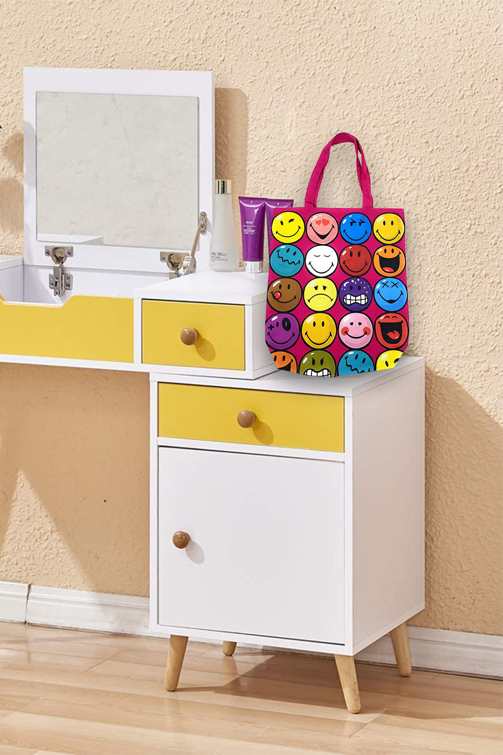 Smiley Pink Multi-face Tote Bag