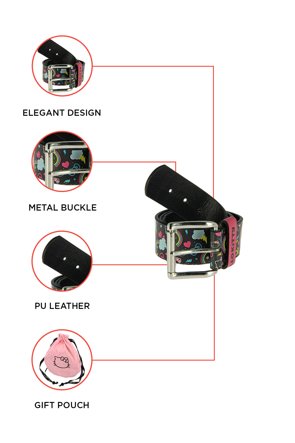 ➡The included pink Hello Kitty gift pouch adds an extra touch of thoughtfulness and convenience for presenting the belt as a gift.
