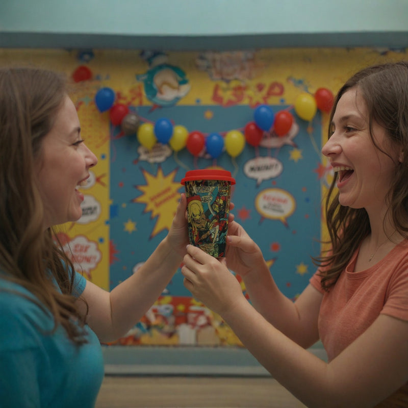 FUN SUPERHERO COMIC PRINT: Features bold comic-style hero graphics that excite children and superhero lovers, making drinking fun and stylish for school, play or travel time.