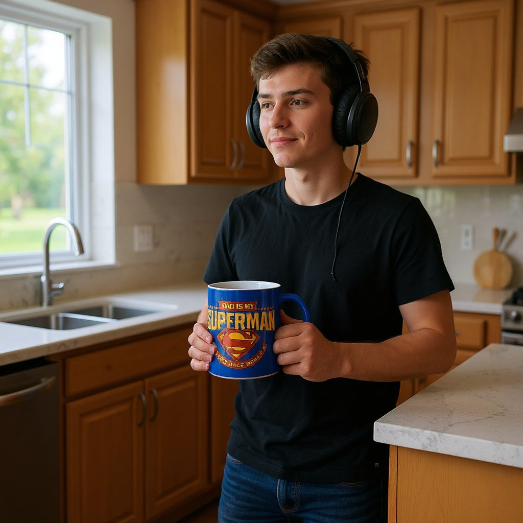 Vibrant & Fade-Resistant: The vivid Superman comic design is printed in high-definition for a bright, fade-proof finish. Ideal for fans of superhero merchandise, cool dad mugs and funny coffee mugs for men.